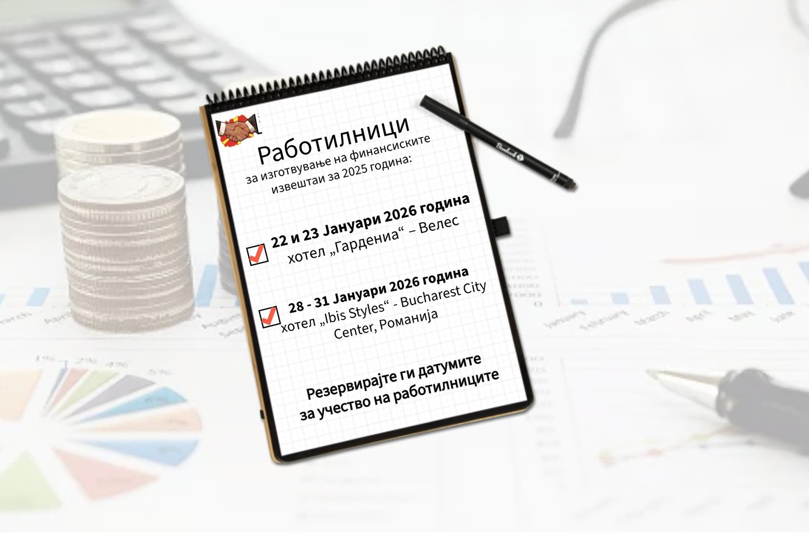 Резервирајте ги датумите за учество на работилниците на тема: „Изготвување на финансиските извештаи / завршната сметка / годишната сметка за 2025 година кај буџетите, буџетските корисници, единките корисници, јавните установи, јавните здравствени установи и јавните претпријатија“ кои ќе се одржат на следните датуми: – 22 и 23 Јануари 2026 година во хотел „Гардениа“ – Велес […]
